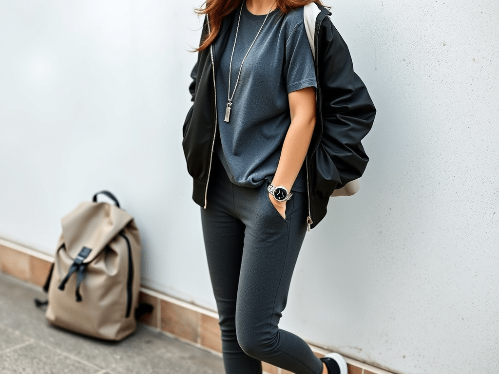 a light bomber jacket colored black to top it off making it a finished outfit,