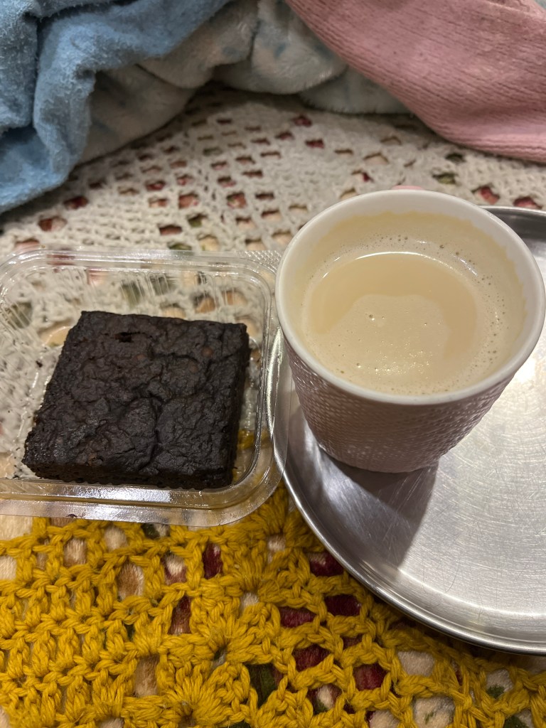 Well I am about to have my morning snack I.e. coffee and one of the brownies that I brought last night from a friend’s cafe…!